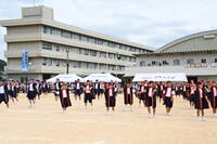 体育部長の力強い宣誓に始まり、全校生によるストレッチ体操、各学年の学年演技と全員リレー、今年度復活した部活パレード、男子生徒によるよさこい、女子生徒による創作ダンス、最後は大縄跳びで、プログラムを終えました。演技をする者も、見る者も、笑顔があふれる素敵なひとときでした。