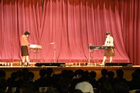 吹奏楽部は、1・2年生だけでの初めての演奏発表でしたが、練習の成果を存分に発揮し、みんなの手拍子に乗って、楽しい演奏を披露しました。図書部の読み聞かせは、会場のみんなを絵本の世界に引き込みました。3年生有志4グループは、見事なピアノ連弾、スライドで部活動の写真を写しながらの歌の発表、先生を巻き込んだ大盛り上がりのダンス、そして、キレッキレの見事なダンス、と滝中生の技と芸を見事に示す発表を披露し、会場が笑顔でいっぱいになりました。
