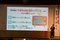 午後は、よみうりテレビのスケッチ予報でおなじみの気象予報士、蓬莱大介さんを講師にお招きして、防災教育講演会を開催しました。滝野地域のデータを含む多くの資料を準備して、天気予報クイズを交えながら、天気予報のしくみや災害への心構えについて話してくださいました。