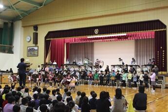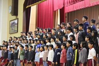 11月16日に開催される「ふれあい音楽会」に先立って、全校児童に自分たちの学年の合奏や合唱を見せる児童鑑賞会を開きました。