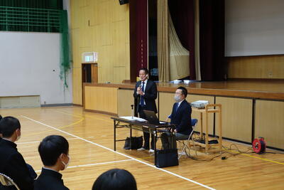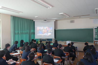 12月2日(木)、県教委の事業である「プロから学ぶ育成事業」で、2年生の生徒が、淡路麺業の出雲社長のお話を聞きました。