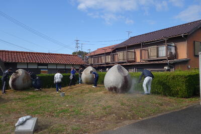 また、回収の後、PTA三役さんが校門前の「心のモニュメント」の清掃をしてくださいました。心がピカピカになりました。ありがとうございました。
