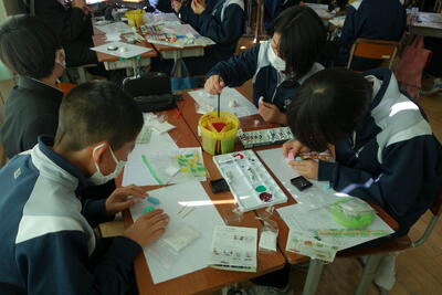 見事な熟練の技に生徒達は驚いていました。その後、生徒達は美術の手作りキットで和菓子作りに挑戦しました。中にはプロに負けず劣らずの作品を仕上げる生徒も出てきました。
