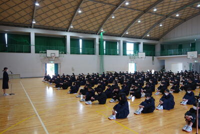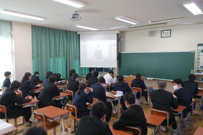 まん延防止等重点措置が実施されていましたので、来賓の参加も自粛してもらい、保護者も最少人数に限定しました。在校生はリモートで教室から参加しました。