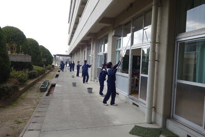 今日は3年間お世話になった校舎を感謝の気持ちを込めて美しくしてくれました。