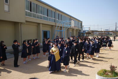 保護者や地域の皆さん、1年間、ありがとうございました。これをもちまして、令和3年度の教育活動を終えます。