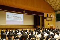 ○今回、金村さんの話を聞いて、母に影響されたというお話が多く出てきました。その中に、「他人の3倍努力しろ」という言葉があります。金村さんは、この言葉に今までずっと背中を押され続けられているんだと思います。この言葉があるからできた、あきらめなかったという話を聞いて、すごく勇気をもらいました。私は勉強などは毎回ふんばりがききませんが、一度やってみようと思います。たくさんの人に支えられ、自分も努力をするということを繰り返し、時につまずいたりもしながら、今の金村さんがいると思いました。目の前に苦しいことがあると立ち止まってしまいます。しかし、その先にある楽しいことを信じて、いつも前向きにいられるようにしたいです。(2年生徒)
