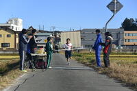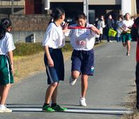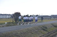 本校では、2週間前から、各学年から選ばれた男女選手24人が、毎日、朝練習を重ね、大会に臨みました。男女各2チーム(5区)が出場し、向かい風に負けず、全員が全力を尽くし、立派に走りきりました。男子Aチームは、見事優勝。女子Aチームはあと一歩のところまで前を走るチームに迫り、みんなの応援にも力が入りました。
