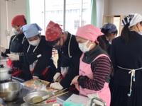 2月1日(水)、食育の取組のひとつとして、いずみ会の皆さんのご協力を得て、2年生3クラスの調理実習を行いました。いずみ会から7名の方にお越しいただき、包丁の使い方から丁寧に教えてもらいながら、一緒にのっぺい汁を作りました。説明の時には、自然と生徒から驚きの声があがったり、拍手が起こったりするなど、和やかな雰囲気でした。素材を生かした和食、特にお出汁の味わいを大切にすることを学びました。いずみ会の皆さん、本当にありがとうございました。