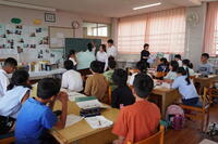名前覚えゲームで緊張をほぐした後、2学期に実施予定の3校合同あいさつ運動の取組企画・計画の話し合いをしました。中学生が話し合いをリードしながら和やかな雰囲気の中、小学生も堂々と自分の意見を述べることができました。互いの交流を意識しながら、校舎は離れていてもできることを考え、積極的な提案がたくさんありました。