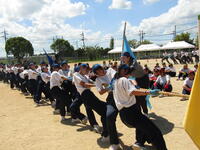 酷暑の中、練習時間を短縮したり、練習場所を変更したり、と工夫しながら、「勝 ~笑利をつかみとれ~」をスローガンに、「だれもが笑顔で追われる体育大会にしたい」という、暑さに負けない生徒たちの熱さで準備、練習を重ねました。必死で仲間を応援しているたくさんの生徒たち、連合の1年生が勝って大喜びしている2、3年生、あちこちで笑顔があふれました。
