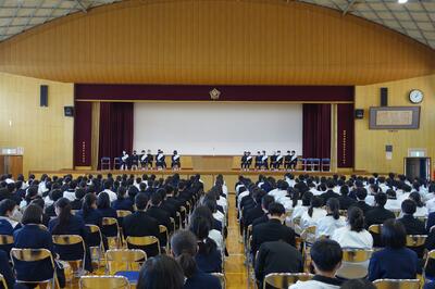 また、生徒集会では、令和3年度生徒会の中央役員の発表がありました。3学期から、現生徒会との引継ぎをしながら活動が始まります。令和3年度も楽しみです。