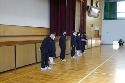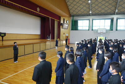 終業式では、学年代表の生徒が反省を発表しました。「気持ちの切り替えが上手にできた」「スキー教室を頑張りたい」「3年生に向けて当たり前のことを当たり前にできるようにしたい」「体育大会が最高の思い出になった」など、2学期の総括をしていました。
