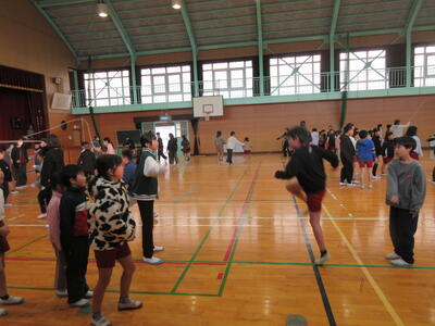 1月31日(金)の朝、縦割り班で大繩とびの練習をしました。1チーム12~13名で縄を回す人は高学年です。低学年は通り抜けでもよいことにしています。苦手な子どももいますが、どの班も高学年が、低学年の手をつないで一緒に通りぬけたり縄に入るタイミングを教えたりとチームワークを発揮して練習できていました。練習は今週と来週の金曜日のあと2回です。そして、体育委員会主催の大繩跳び大会は2月21日(金)の朝に開催予定です。練習や大会を通して子ども同士の絆がさらに深まることでしょう。