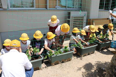 加東エコ隊の方々のご指導を受けながら、4年生がゴーヤを植えました!