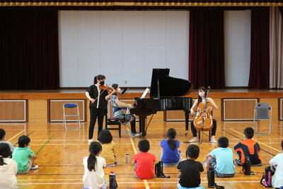 4年生の子どもたちがすてきな演奏を聴きました。プロの演奏を聴きながら、