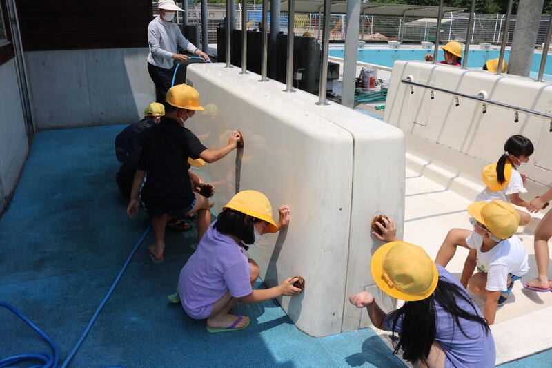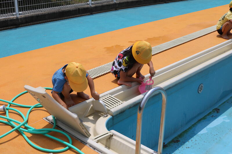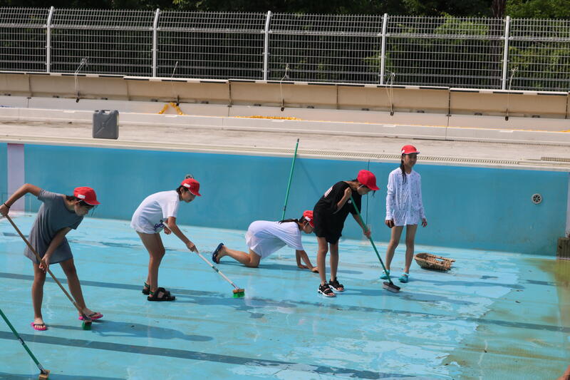 6月10日(金)、晴天の中、プール掃除が行われました。1年間の汚れを落とし、ピカピカのプールにしようと、1・2年生はプールサイド、シャワー、洗体槽を、3・4年生は更衣室、溝、プールサイドを、5・6年生は小プール内と大プール内の掃除を頑張りました。みんなが黙々と一生懸命に掃除をしたおかげで、プールはピカピカになりました。21日のプール開きが楽しみです。