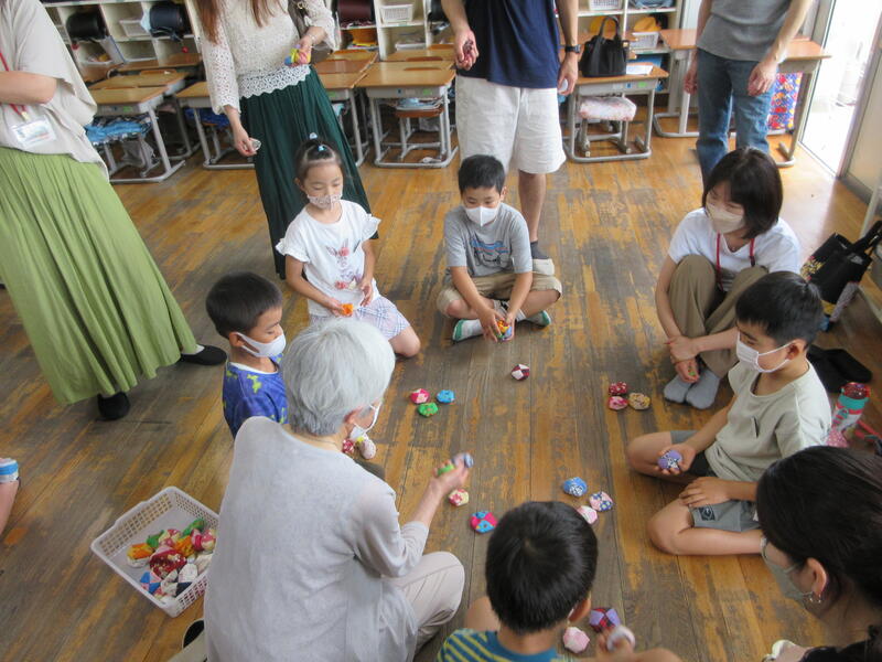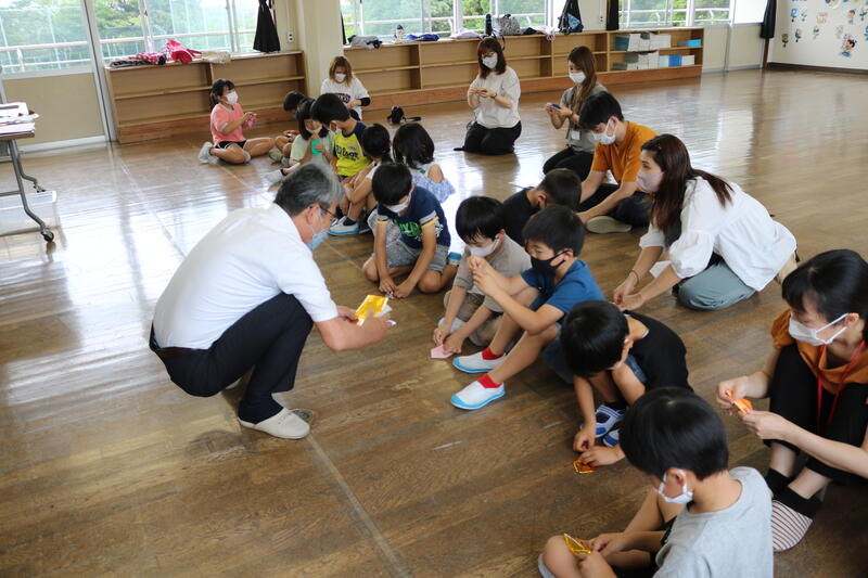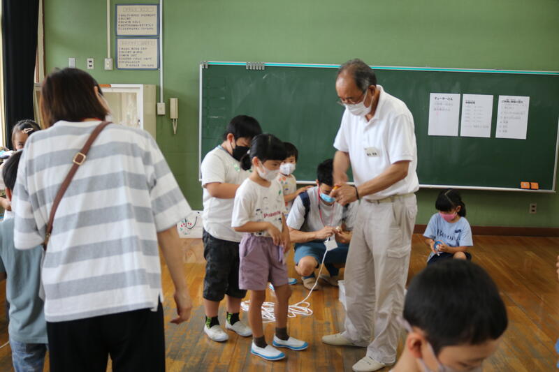 6月18日(土)、今年度第1回目の学校オープンがありました。学習参観の他、滝野南小学校で30年以上も前から続いている、ふるさと体験学習を3年ぶりに開催することができました。25名の地域のチューターの方に来ていただき、低学年は、コマ回しやお手玉、けん玉、紙飛行機、紙風船などの昔遊びを教えていただきました。高学年は、竹とんぼ、凧、お手玉、昔の食事・おやつ、折り紙など、昔の食事や遊び道具作りを行いました。チューターの皆さんに優しく丁寧に教えていただき、子どもたちは大喜びでした。滝野南小学校は地域や保護者の皆さんに温かく見守られ、支えていただいている学校だということをあらためて実感しました。チューターの皆様、大変お世話になり、有難うございました。来年度もよろしくお願い致します。学習参観の後には、地区水泳に先駆けて、PTA保体部の皆さんにお世話になり、心肺蘇生法講習会が行われました。5校時には自然学校の説明会もあり、盛りだくさんの一日になりました。暑い中、たくさんの保護者の方にご参加していただくことができました。どうも有難うございました。