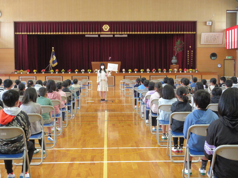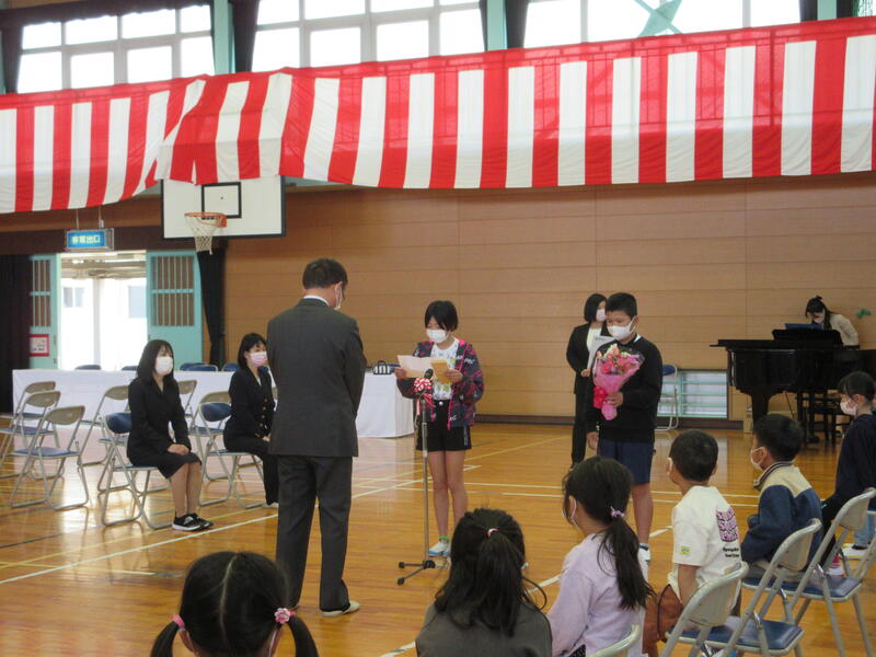 3人の友達が転入したので、着任式の後、紹介式を行いました。仲間が増え、全校生138名、教職員19名で滝野南小学校の令和4年度がスタートしました。久しぶりに全校生が体育館に集まって、第1学期の始業式を行いました。5名の学年代表が「1学期がんばりたいこと」を発表しました。新しい学習、自分の苦手なこと、高学年としての頑張りなど、自分の課題を見つけ目標を定めて発表する姿に、進級した喜びと意欲を感じ嬉しくなりました。これからの頑張りが楽しみです。校長からは学校目標「豊かに たくましく 学び続ける南っ子~もとめる子・つながる子・きたえる子~」についての話をしました。子どもたちには夢をもってほしいと思います。大きな夢もいいですが、「漢字をたくさん覚えたい。」「跳び箱を跳べるようになりたい。」これらも立派な夢です。夢をかなえるために目標を立て努力してほしいと思います。私たちは全力で子どもたちの頑張りを支えていきます。