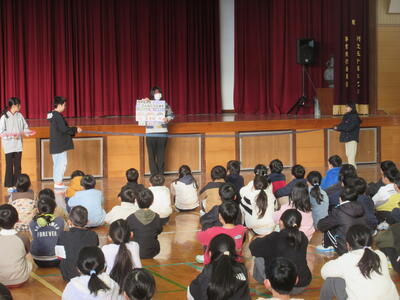 2月4日(火)の朝会では、2月の歌「旅立ちの日に」(2部合唱)の練習をしました。全校生で歌うのははじめてでしたが、子どもたちの美しい歌声が体育館に響きました。今後、卒業式に向けてどの学年もさらにレベルアップを図っていきます。卒業式の歌声が楽しみになりました。