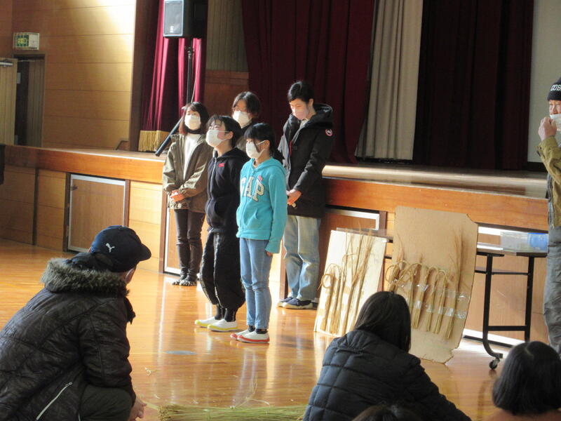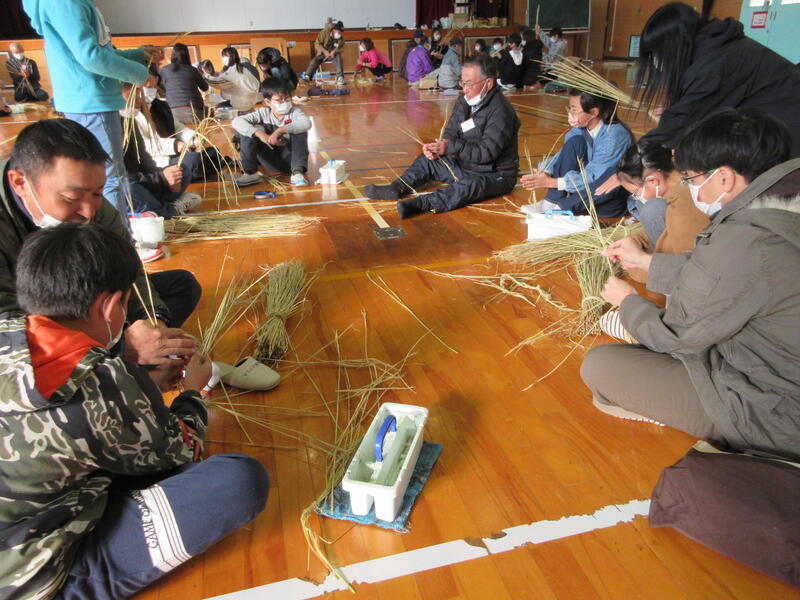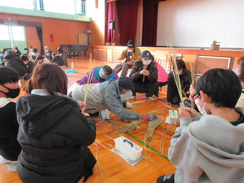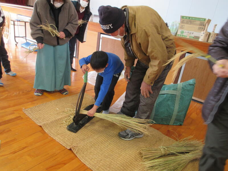 1 2月8日(木)、5年生のPTCA活動(親子活動)が行われました。地域の方に来ていただき、しめ縄作りを行いました。縄をなうのが難しく、子どもたちもおうちの方も初めは苦労されていましたが、だんだん慣れてきて、上手になうことができるようになりました。そして、めがねを作り、先を裁断して、しめ縄が完成しました。今年は5年生の子どもたちの家には、手作りのしめ縄が飾られることでしょう。お世話になった地域の皆様、寒い中ご指導いただきまして、有難うございました。来年度もよろしくお願い致します。