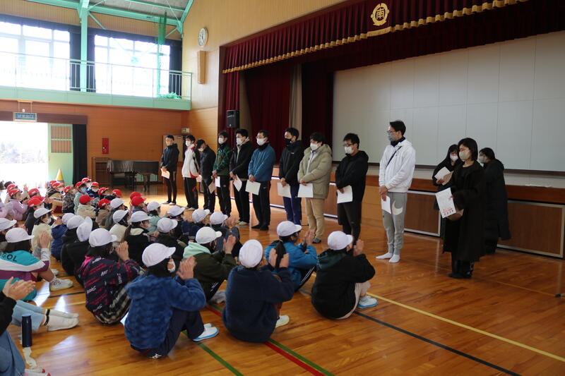 1月28日(土)、今年度最後の学校オープンとふれあいマラソン大会を行いました。子どもたちはおうちの方に成長した姿を観ていただこうと、はりきって学習をしました。また、5月から続けてきた詩の暗唱を学年層毎に聞いていただきました。清少納言の枕草子、春の章を1・2年生、夏の章を3・4年生、秋の章を5年生、冬の章を6年生が暗唱しました。まだ群読とまではいきませんが、今後は全校生による群読にも挑戦していきたいと思います。また、12月から続けてきた耐寒駆け足の締めくくりとして、ふれあいマラソン大会を行いました。参加者全員が諦めることなく、最後まで完走できたことが何より嬉しいことでした。また、6年生の女子が2名、大会新記録を出しました。子どもたちの頑張りを応援しようと、15名の保護者の方が子どもたちと一緒に走ってくださいました。授業参観、群読、マラソン大会と盛りだくさんでしたが、たくさんの保護者の皆様にご参加いただき、子どもたちに温かい声援をおくっていただきまして、有難うございました。また、午後から2回目の資源ゴミ回収を行いました。今回は、収益金の中から卒業記念品代を出すため、PTA役員のみなさんと一緒に、6年生の児童と保護者が回収作業を手伝いました。ご協力いただきまして、有難うございました。