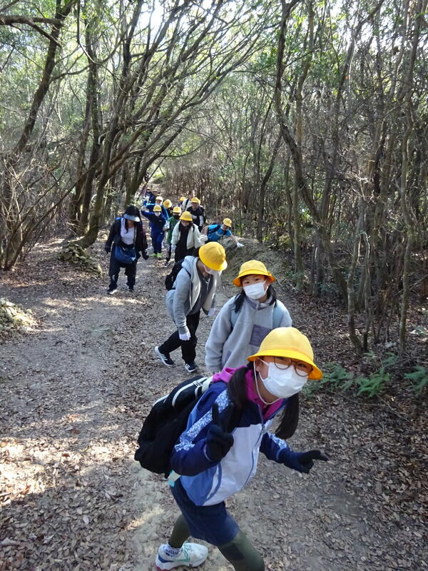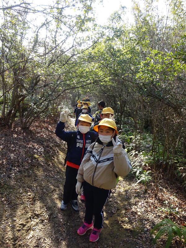 1月12日(火)、自然学校のしめくくりとして、5年生が三草山に登りました。この日は、3月のような暖かい天候で、山に登っていると汗が出てくるくらいの陽気でした。5年生の子どもたちは、「だいじょうぶ?」「ここ滑るから気をつけて!」と声をかけ合い、疲れた友達のペースに合わせて登りました。出会った人にも「おはようございます!」「気をつけて登ってください。」と気持ちのいい挨拶ができました。3回の自然学校を通して、子どもたちは、「協力&解決力」「責任力」「自立力」「友情力」を伸ばし、大きく成長しました。これらの力を3学期につないで、きっと活躍することでしょう。楽しみです。